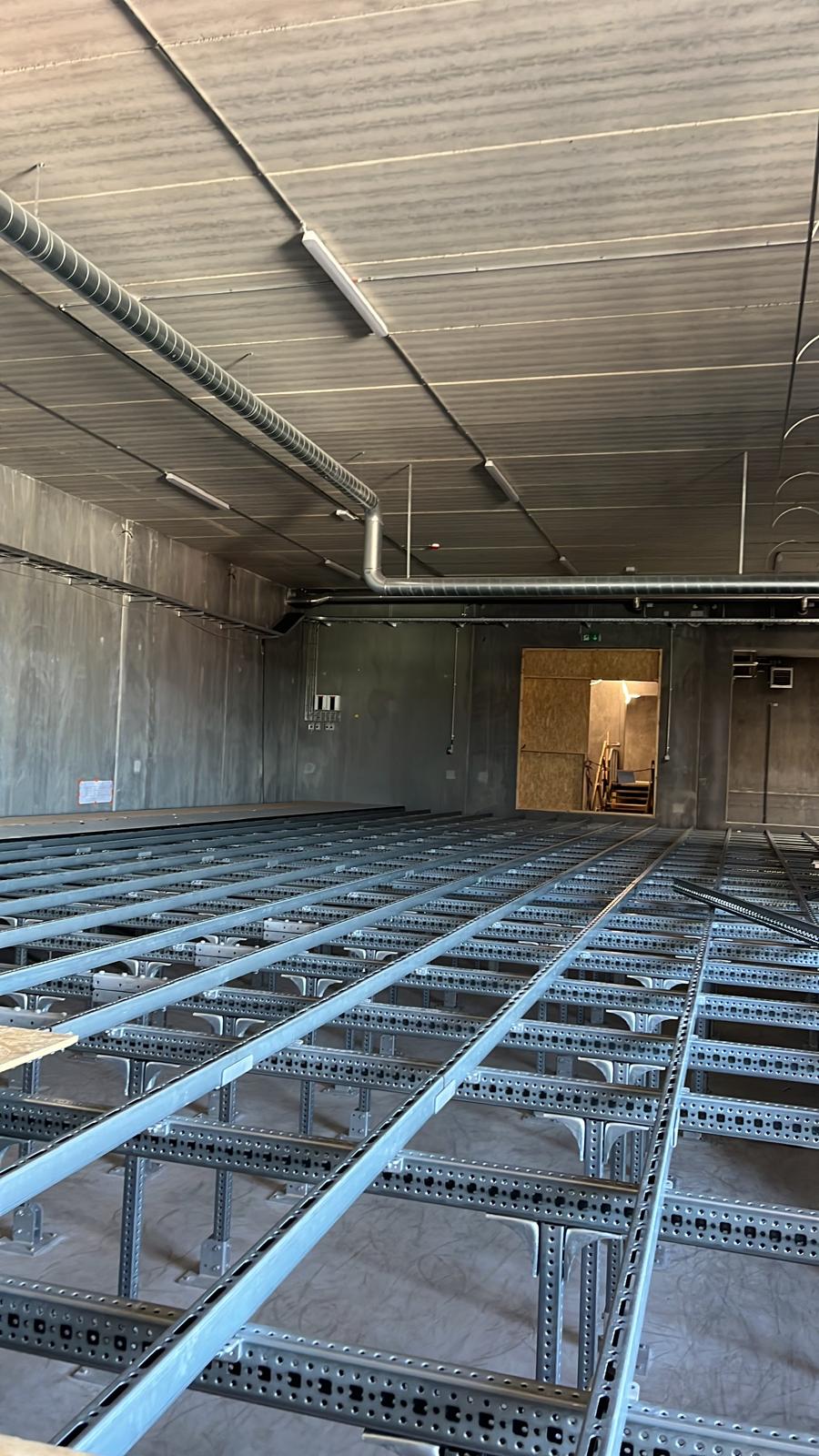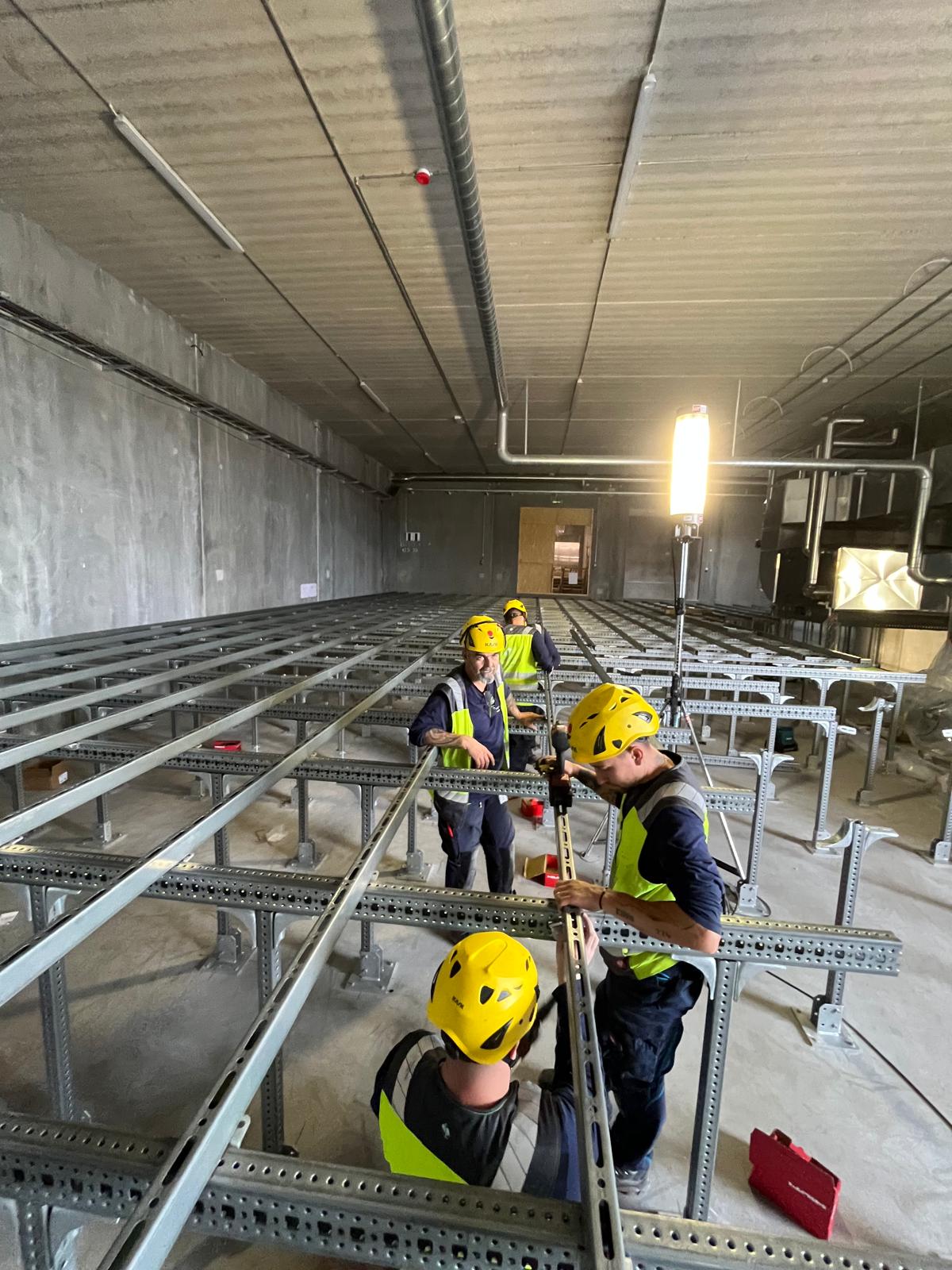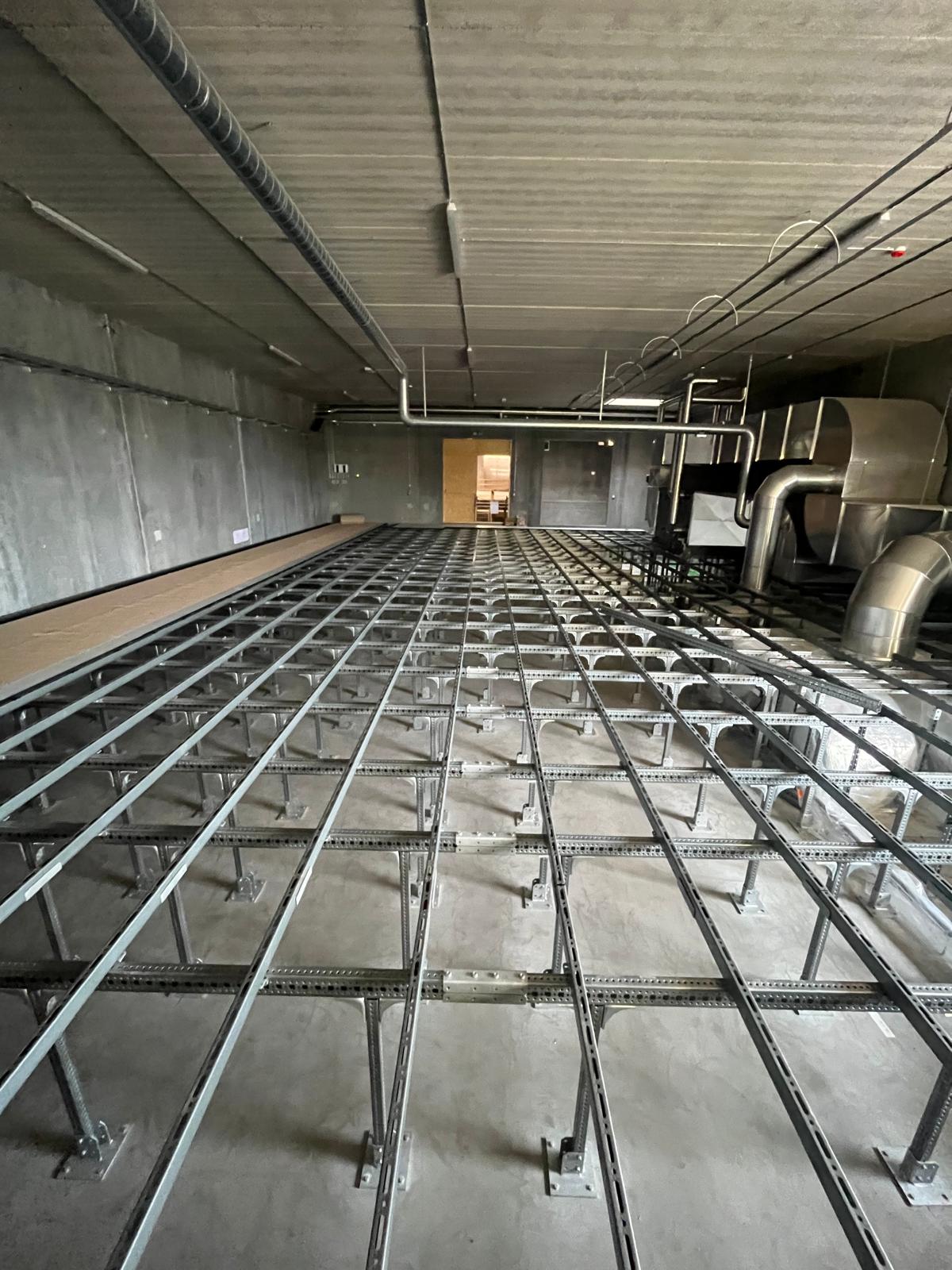 Montáž zdvojených podlah systému Hilti v rozvodně VN. Příprava kabelových tras.